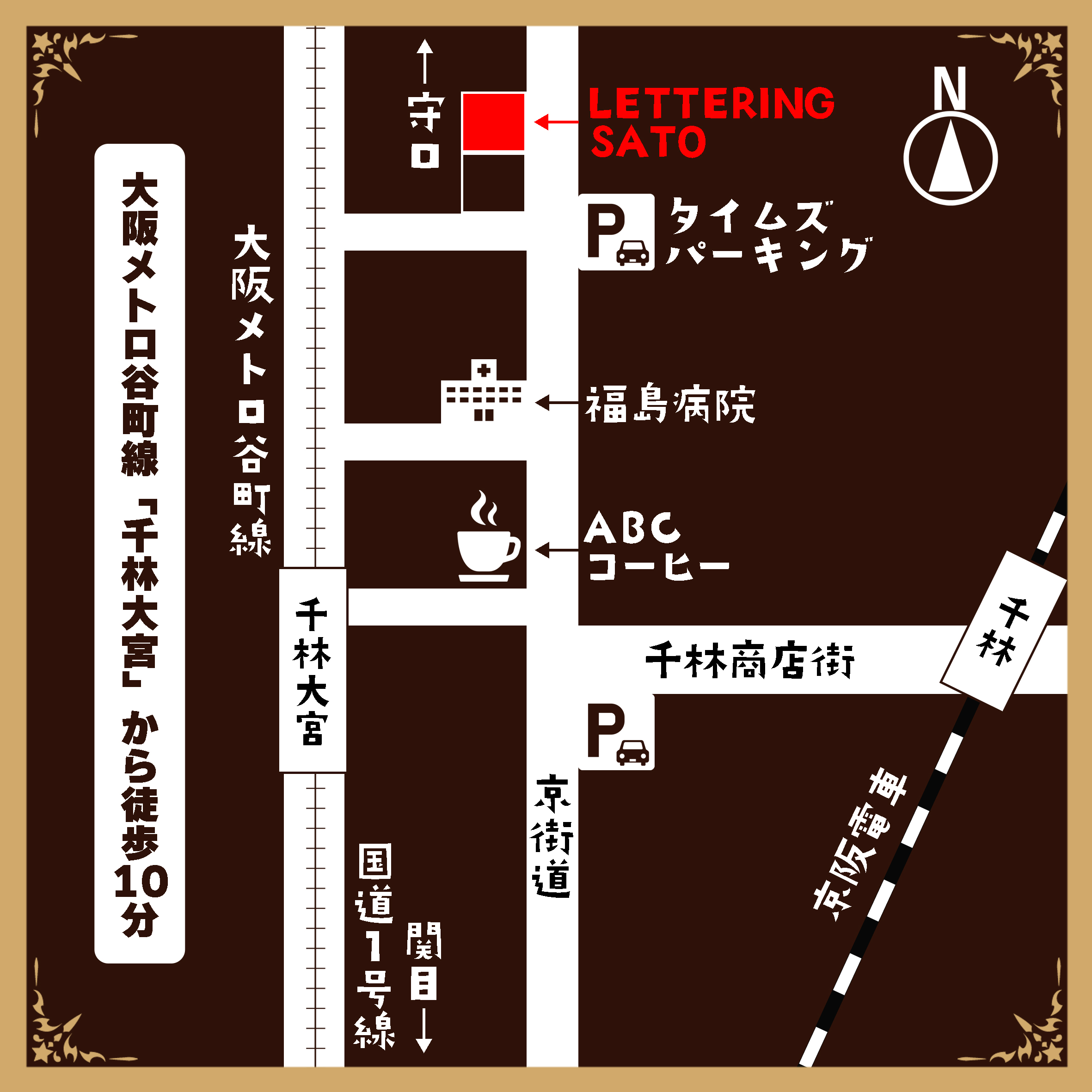 店舗は大阪メトロ谷町線「千林大宮」から徒歩10分です。場所がわからない場合、ご連絡いただければ車で送迎可能です。お気軽にお問い合わせください。